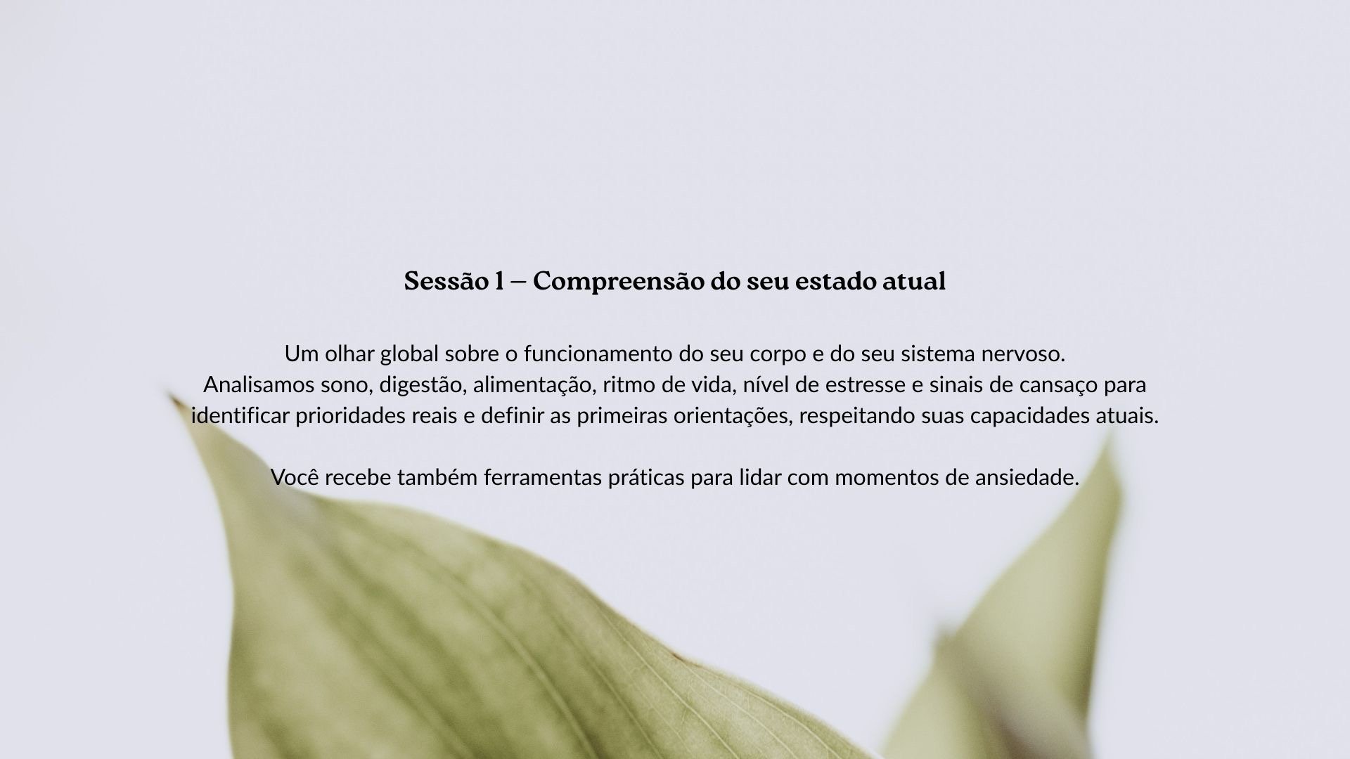 Este acompanhamento foi pensado para pessoas que convivem com ansiedade crônica, estresse persistente e sinais de esgotamento, e que precisam de um processo estruturado, progressivo e sustentável — não de soluções rápidas que não se mantêm no tempo.